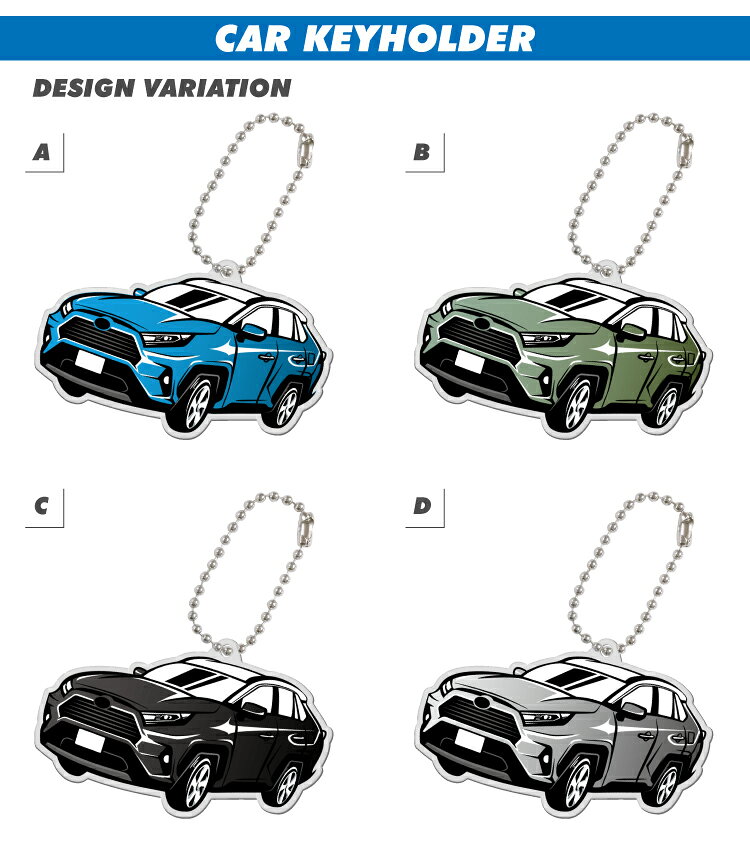 ・バッグやスマホなどのアクセサリーとしても使えます! 【RAV4 デザイン選択】 ・デザインA ・デザインB ・デザインC ・デザインD ・デザインE 【ナンバープレートベース選択】 ・普通車デザイン (背景:白 文字:緑) ・軽自動車デザイン【黄】 (背景:黄 文字:黒) ・事業用デザイン (背景:緑 文字:白) ・軽自動車事業用デザイン (背景:黒 文字:黄) 【サイズ(目安)】 RAV4 /W:約57mm H:約36mm 厚み:約3mm プレート/W:約42mm H:約24mm 厚み:約3mm 【素材】 アクリルプレート 【セット内容】 RAV4 ナンバープレート付きキーホルダーセット×1 ※キーホルダーのデザインやサイズは予告なく変更になる場合がございます。
