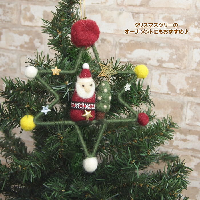 【即出荷】 クリスマス オーナメント リース サンタクロース 飾り 装飾 かわいい クリスマス雑貨 インテリア デコレーション Xmas 子供部屋 羊毛 ウール【フェーネージュリース】【定形外郵便送料無料】