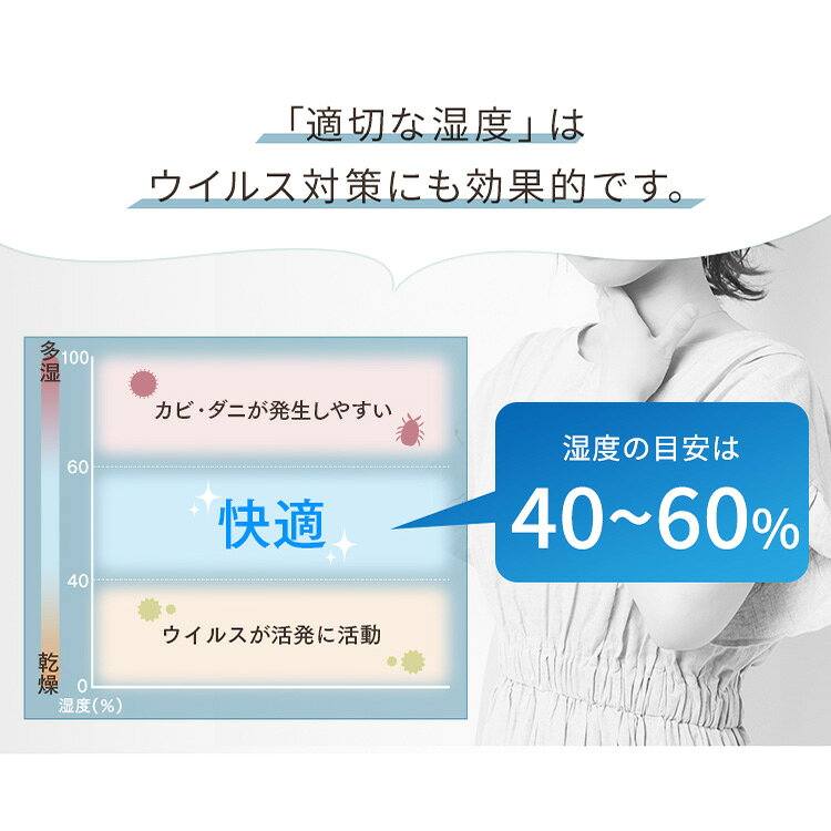 適切な40〜60%の湿度はウイルス対策にも効果的です。