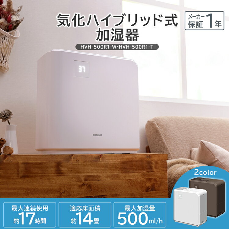 気化ハイブリッド式加湿器500ml HVH-500R1 全2色 送料無料 気化ハイブリッド式加湿器 加湿 加湿器 ハイブリッド 気化 省エネ はいぶりっど 静音 かしつき パワフル 省エネ ぱわふる 潤う かしつ アイリスオーヤマ