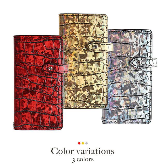 【仕様】 商品名 : ハイブリッドレザー ホログラムクロコダイル ケース色 : レッド ゴールド シルバー ※仕入れる生産ロットや裁断箇所により、色合いや模様の出方が若干変わる場合がございます。