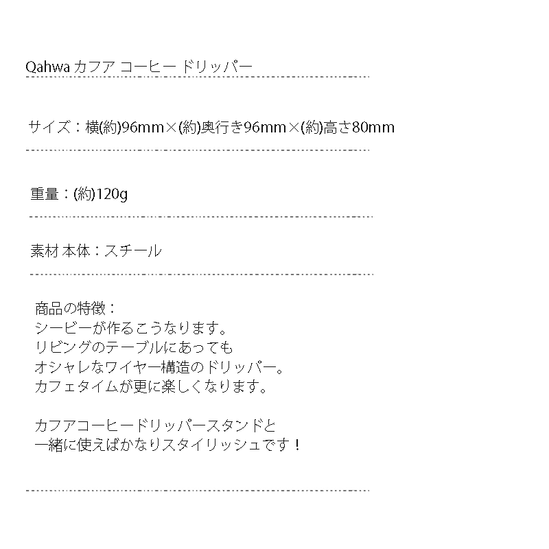 Qahwa カフア コーヒー ドリッパー スチール 清潔 丈夫 コーヒー用品 コーヒー器具 コーヒーグッズ 珈琲 ハンドドリップ 珈琲ドリッパー おしゃれ モダン シンプル ギフト プレゼント