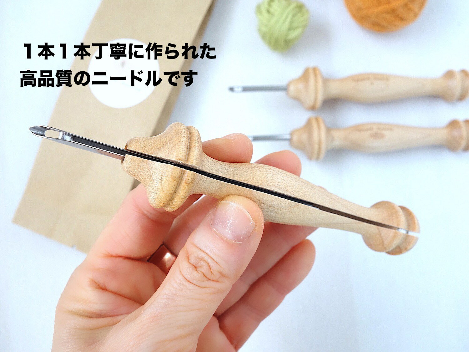 商品説明サイズ 本体ウッドハンドル部分長さ:10.5cm針の長さ…3.5cm材質持ち手:木 針:鉄&コーティング(韓国製)商品説明 スリットタイプで糸換えが簡単ですので、作業効率が上がります。