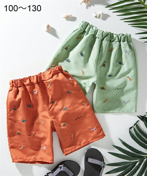 水着 キッズ 男の子 恐竜 刺しゅう サーフ パンツ モスグリーン/レンガ 身長100/110/120/130cm ニッセン nissen