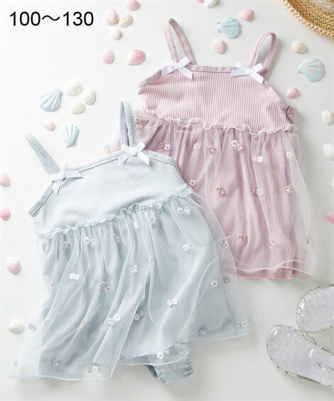 水着 キッズ 女の子 チュール 刺しゅう ワンピース ピンク/ミント 身長100/110/120/130cm ニッセン nissen