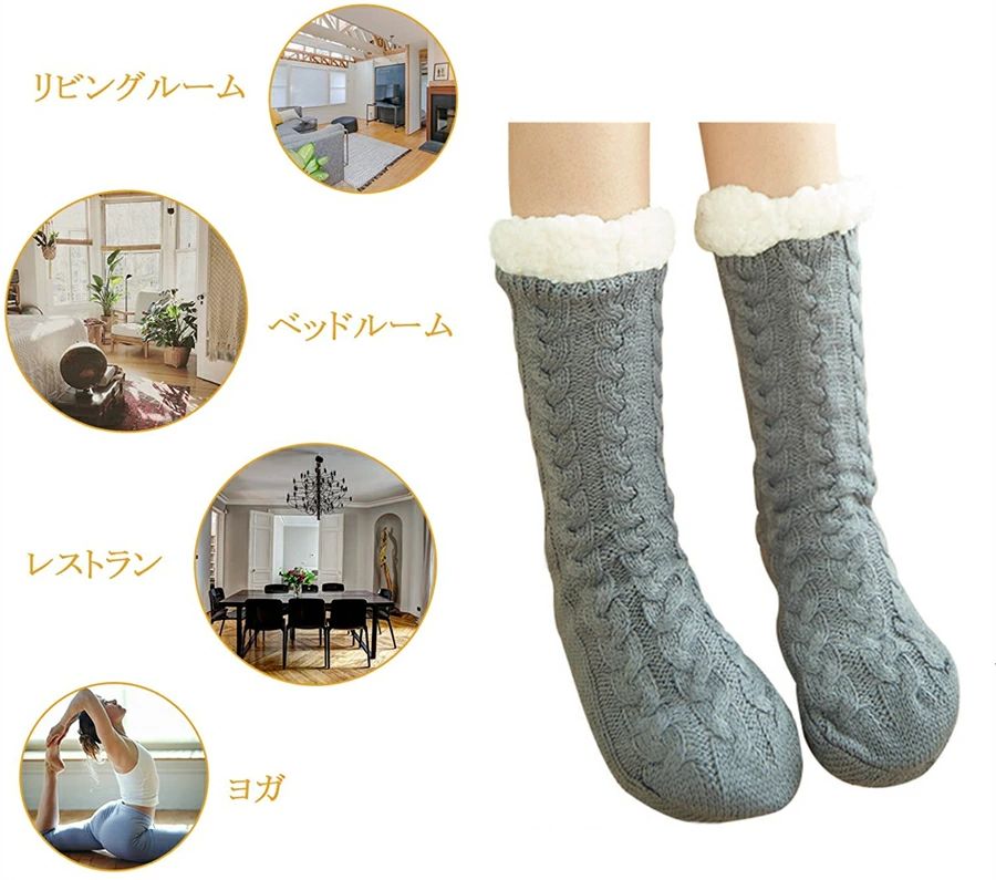 【滑り止め付き】足底にはシリコン製の滑り止め付きソックス、滑りにくくて、家の隅々まで歩き回っても安心して快適に過ごせます。