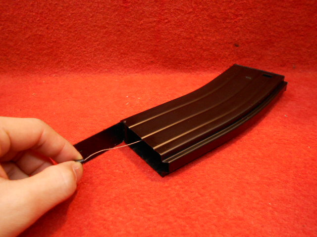 マガジン底部の蓋を開け、ワイヤーを引っ張れば巻き上げが完了。