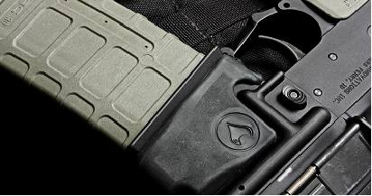 ロアレシーバーのマグウェル部に装着するオーバーラップタイプのラバーグリップ、フィンガーチャネルによりグリッピングが確実になるとともに、銃の外観のワンポイントアクセントになります。