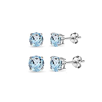 【中古】【輸入品・未使用】スターリングシルバー ブルートパーズ ラウンドカット ソリティア スタッドピアス レディース ティーン