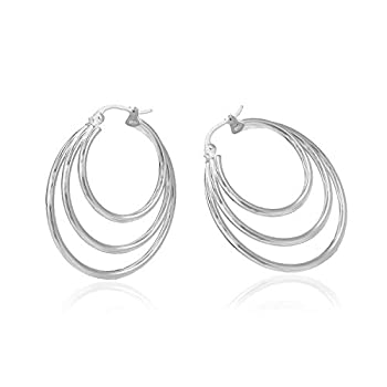 【中古】【輸入品・未使用】Sea of Ice スターリングシルバー トリプルサークル ラウンドチューブ フープピアス 30mm 1 1/5インチ シルバー